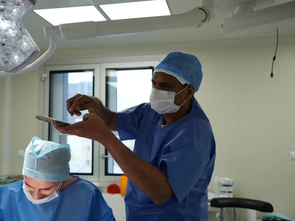 Доктор Ymani Venkata Ramana присутствовал на разметке, участвовал в обсуждении подходов к планированию операций и выбору хирургических методик. Он также наблюдал за процессом и активно включался в профессиональные дискуссии.