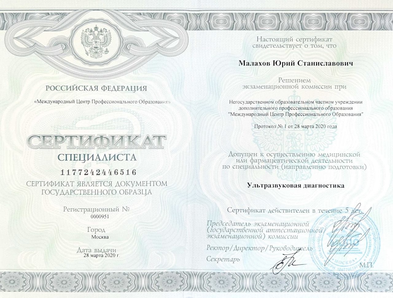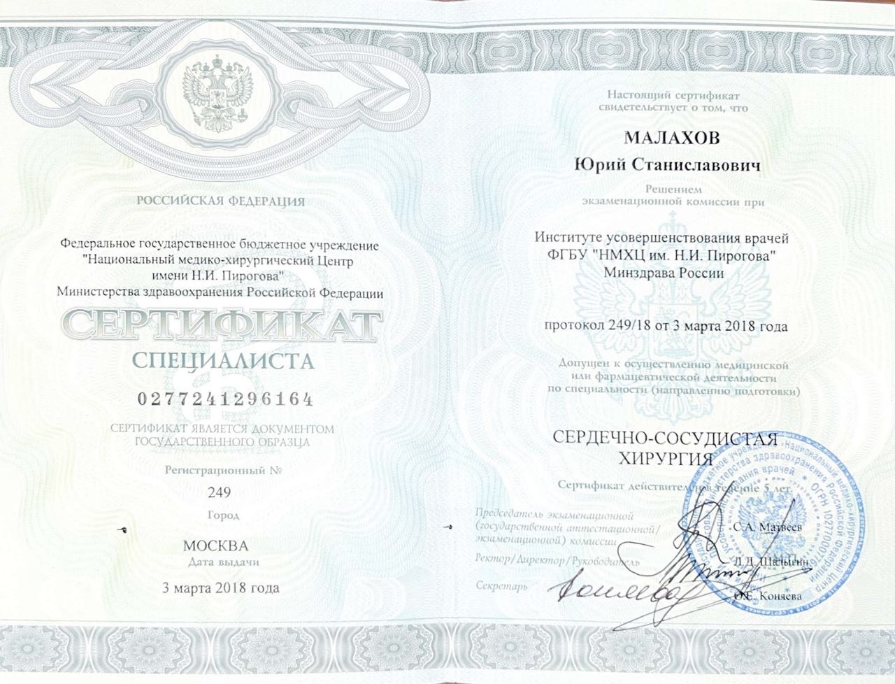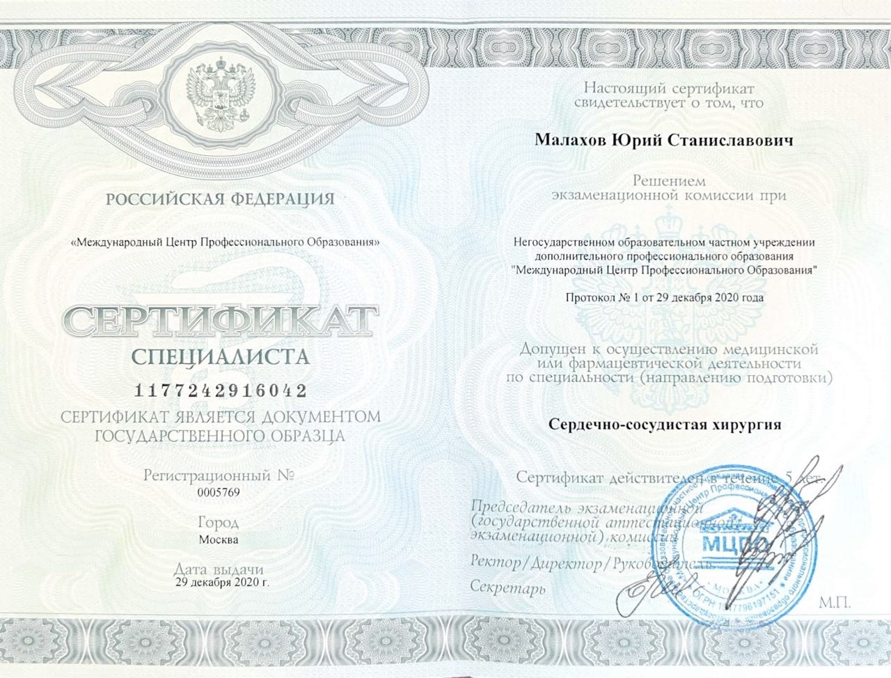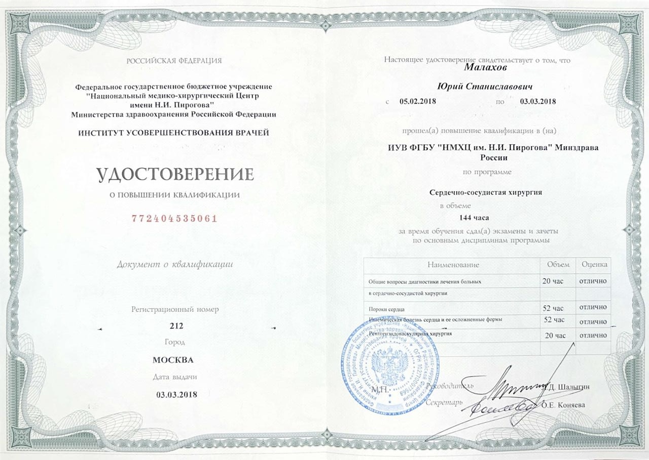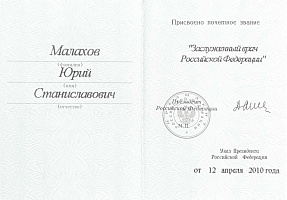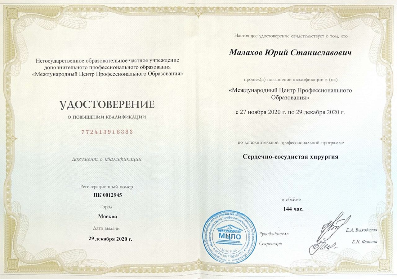 Врач сердечно-сосудистый хирург, доктор медицинских наук, флеболог высшей категории, Заслуженный врач РФ