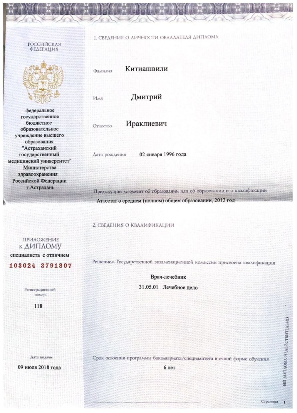 - В 2018 году закончил Астраханский Государственный Медицинский Университет по специальности «Лечебное дело».