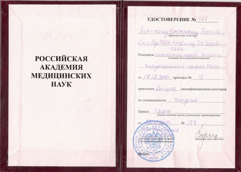 Выпуск XIV ,ГУ РНЦХ им. Акад. Б.В. Петровского РАМН, стр.3-9, 2008 г.