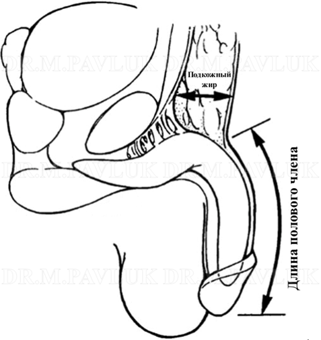 - уменьшение длины полового члена, вызванное проведенными ранее операциями (например удалением простаты)