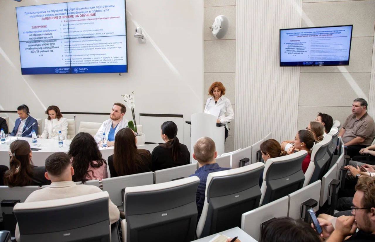 Директор УЦ «Ланцетъ», к.м.н. Косминкова Ирина Николаевна объяснила абитуриентам порядок приема в ординатуру в Учебном центре «Ланцетъ» на базе ИПХиК.