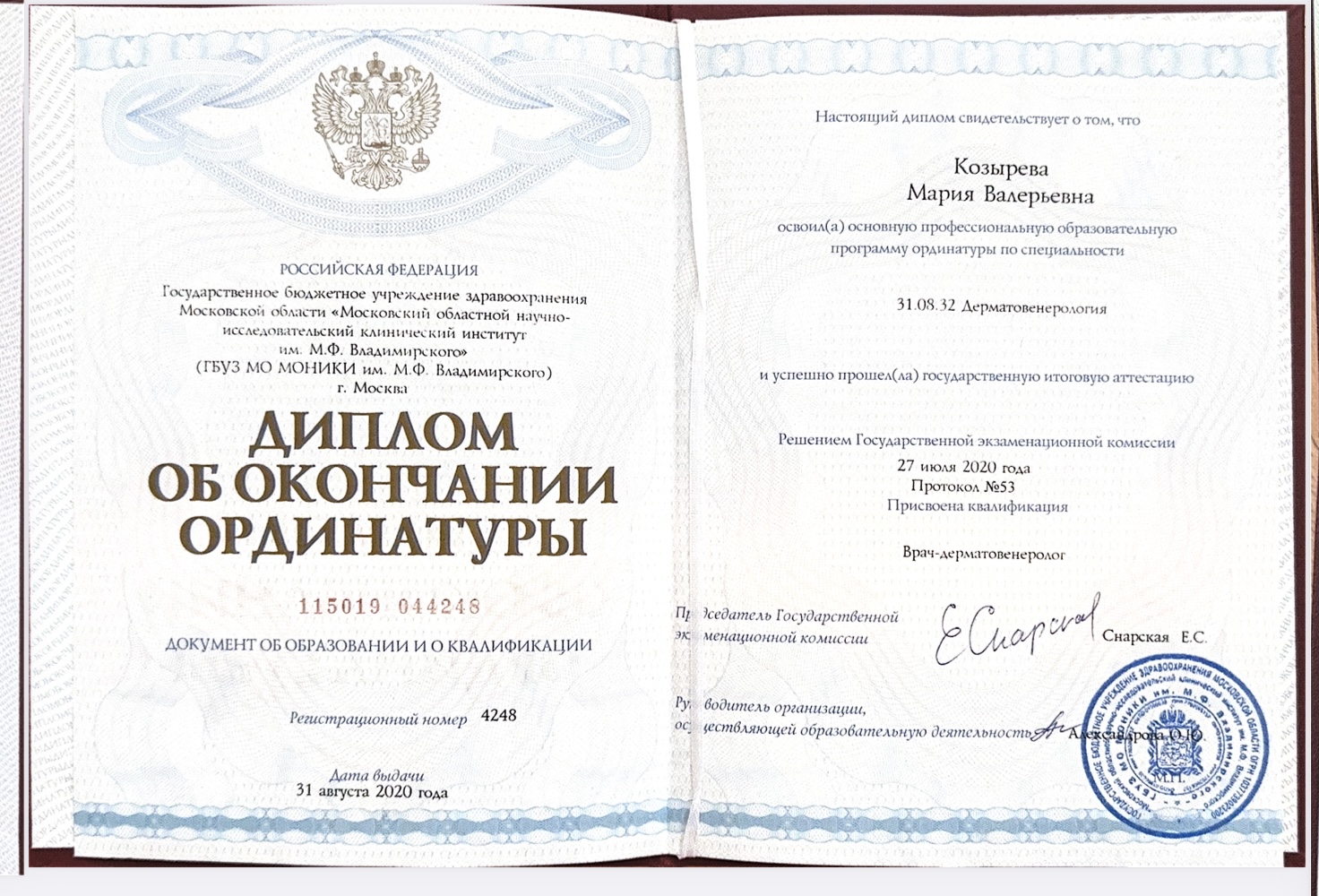 Мария Валерьевна — действующий спикер профессиональных конгрессов (ECALM, Всероссийский форум национального альянса дерматовенерологов и косметологов и др.) и соавтор научных статей.